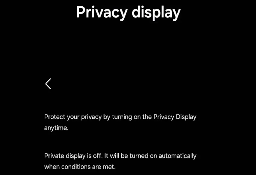 סמסונג תציע גם אפשרות הנקראת "פרטיות מירבית" (Maximum Privacy), שתאפשר להנמיך את בהירות המסך בעת הפעלת התכונה, מה שיקשה עוד יותר על סקרנים בסביבה להציץ למסך.