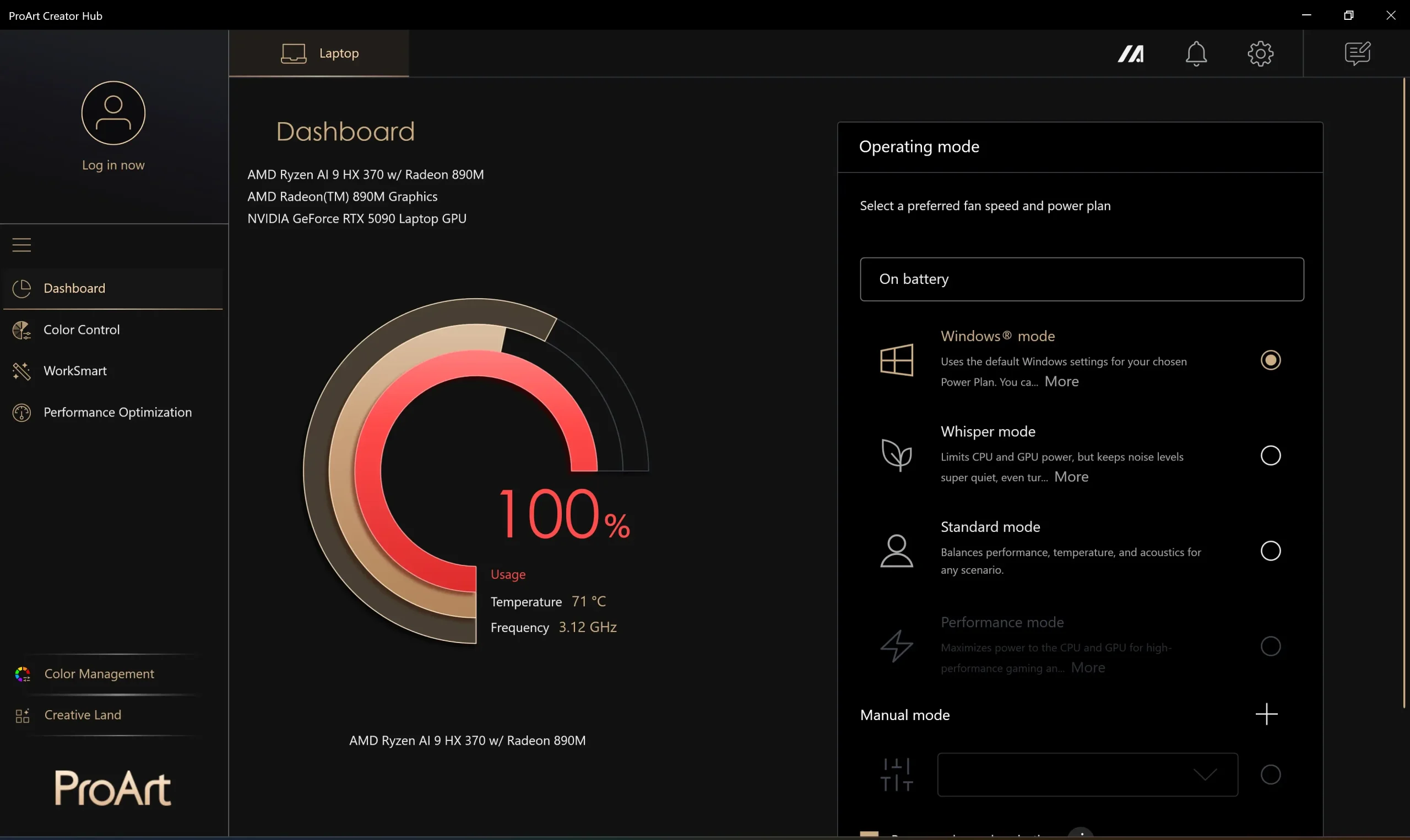 מעליה/לצידה מוצאים את ProArt Creator Hub החשובה שמאפשרת לנהל את פלטות הצבעים בהן רוצים להשתמש בעת יצירת התוכן, לכוונן את ביצועי המחשב לפי היישומים השונים, להגדיר במדויק את החוגה למצבי עבודה שונים, ליצור קבוצות עבודה חכמות עבור תרחישי יצירה שונים ועוד. ומעבר לכך, כמויות גדולות של מידע על העבודה השוטפת של המחשב שמאפשרות למשתמש להיות עם היד על הדופק כל הזמן.