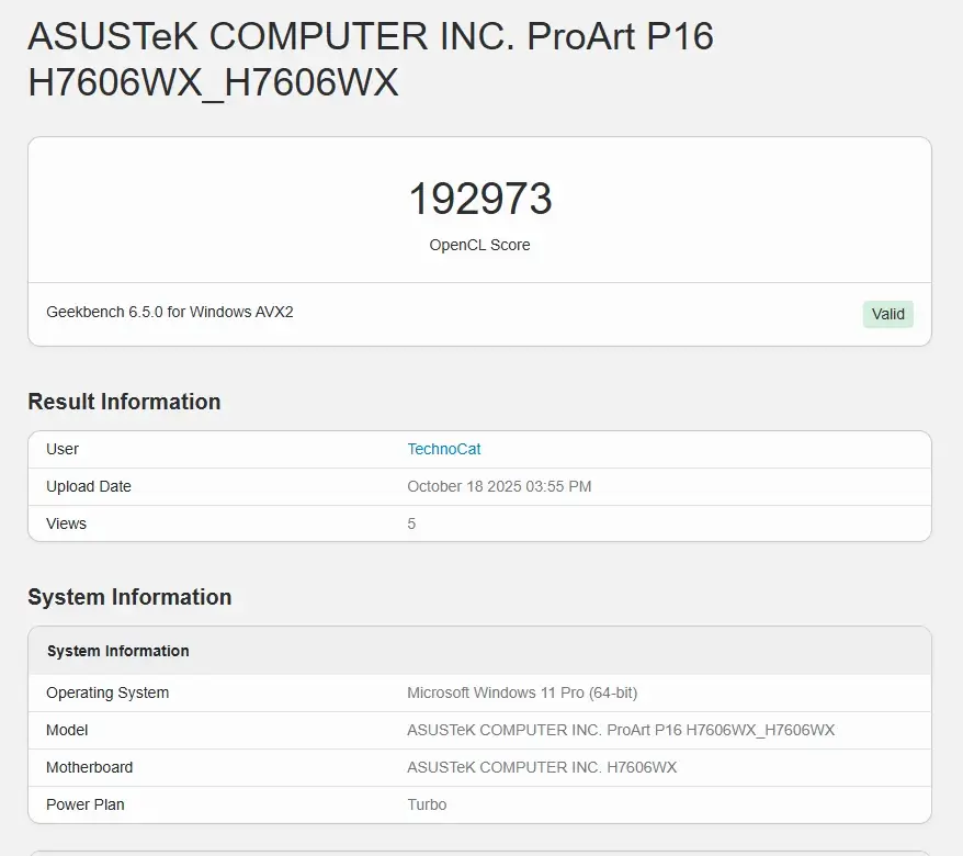 בבדיקות של Geekbecnh 6.5 אפשר להבין עד כמה הכרטיס הזה חזק, במבחן ה- Compute הוא השיג תוצאה של 192,973 נקודות, שהיא הכי גבוהה שהושגה בבדיקות שביצע כותב שורות אלו, ללא ההמהרה הנהוגה במחשבים ניידים שמיועדים לשוק המשחקים.
